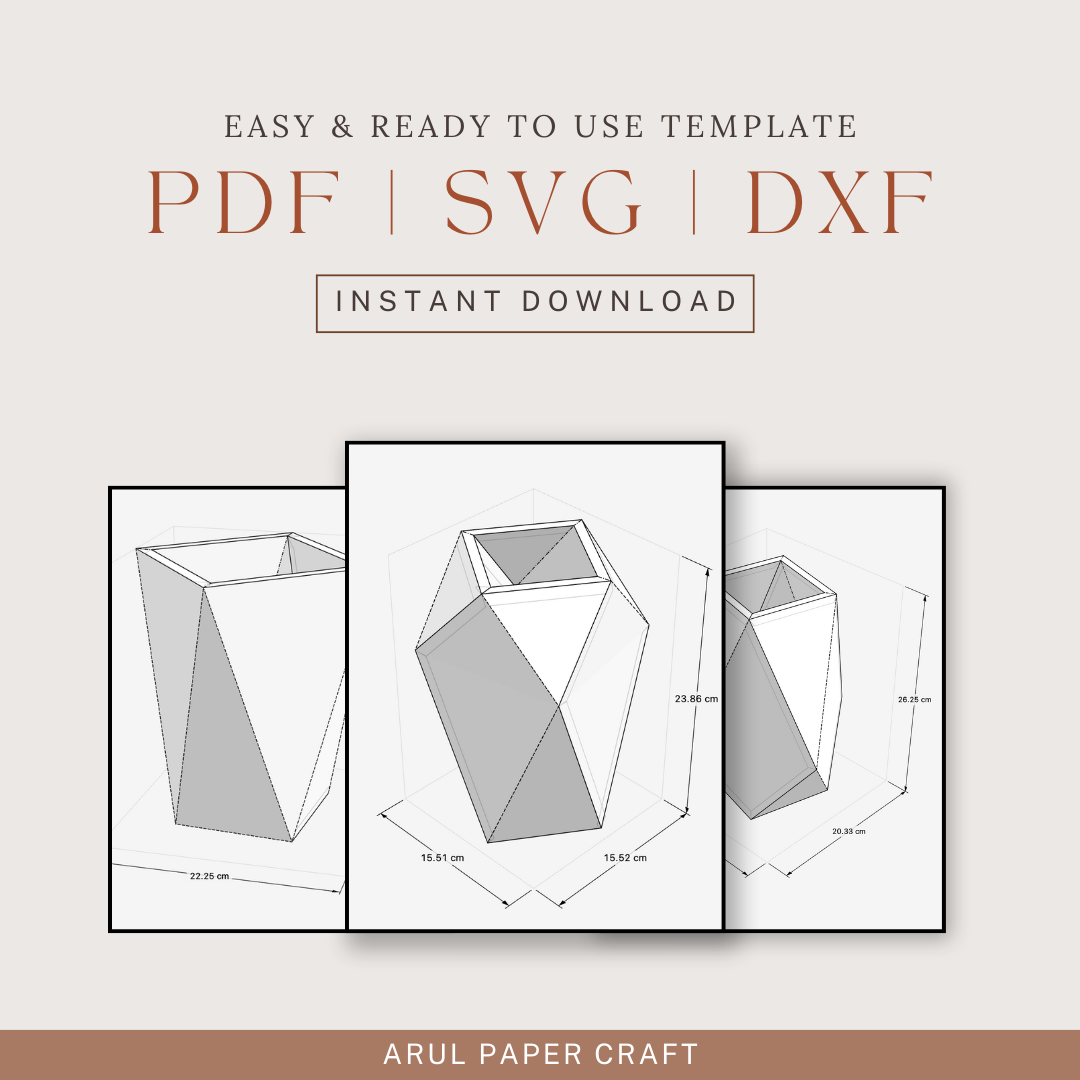 3d Easy Flower Pot DIY Model in Pdf, Dxf Format, Kids Crafting Activities, Paper Models, Low poly flower pot template home decor