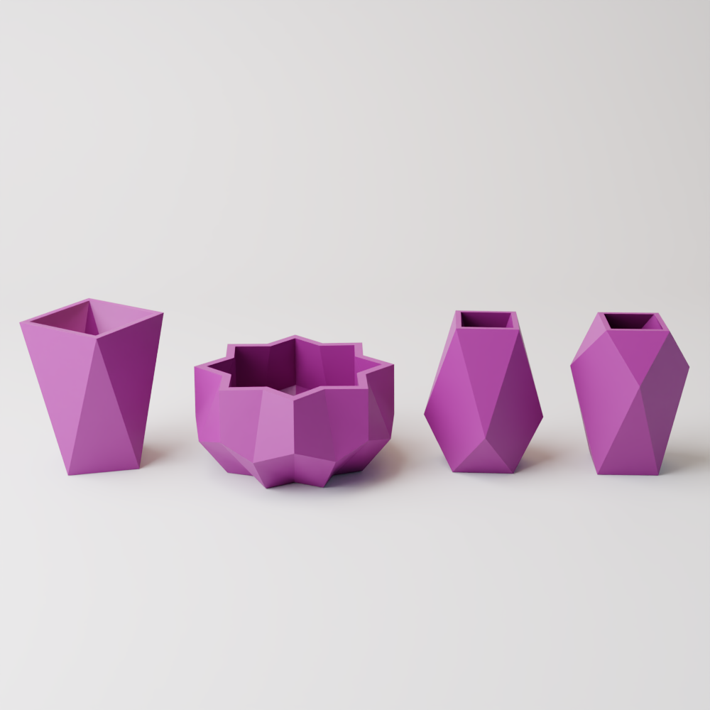 3d Flower Pot Collection DIY Model in Pdf, Dxf Format, Kids Crafting Activities, Paper Models, Low poly flower pot templates home decor
