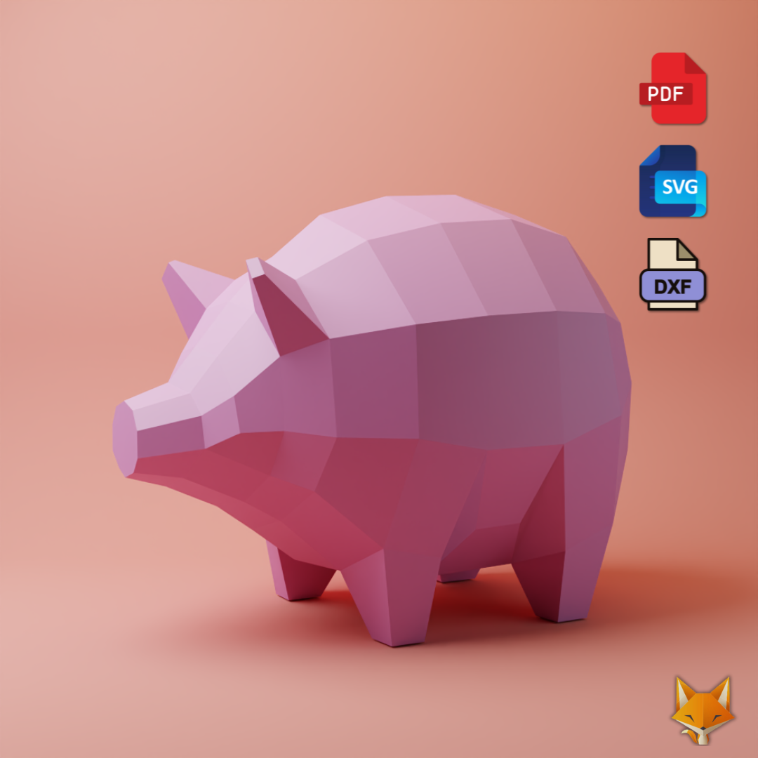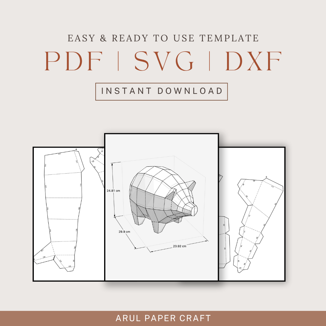 DIY Pig Papercraft Model, Low Poly 3D Template (pdf, svg, dxf)
